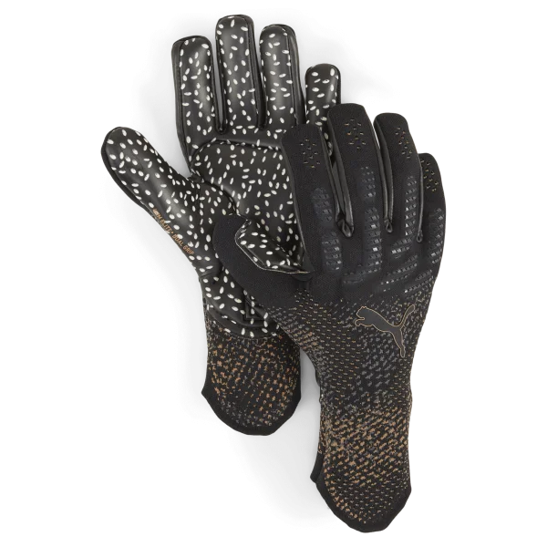 Puma Future Ultimate NC Black Copper keepershandschoenen zijn voorzien van Puma’s 4 mm Elite+ Grip latex handpalm. Dit zorgt voor een ultieme grip tijdens alle weersomstandigheden. De negative snit in de Puma Future Ultimate NC Black Copper zorgt voor een perfecte pasvorm. De 3D gebreide backhand biedt zowel bescherming als kracht wanneer je de bal wegbokst in cruciale situaties. Door de thumb wrap zit er meer latex op de duim, wat zorgt voor nog meer grip. De hogere handschoensluiting geeft je een strakke pasvorm, verhoogde mobiliteit en meer comfort. LET OP!!! Houd er rekening mee dat als je deze handschoenen op kunstgras gaat gebruiken dat er sneller slijtage op kan treden.
